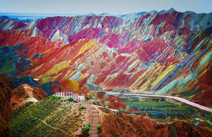 China es un país gigante, de dimensiones continentales. No es de extrañar pues que a lo largo de su enorme territorio encontremos una geografía muy variada, desde densos bosques hasta vastos desiertos, pasando por ricos arrozales y altas montañas nevadas. En esta ocasión nos detenemos en un rincón de la provincia de Gansu, al noroeste del país, para conocer de cerca el curioso Parque Geológico Nacional Zhangye Danxia, que ocupa una pequeña superficie de 500 metros cuadrados.